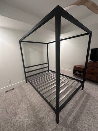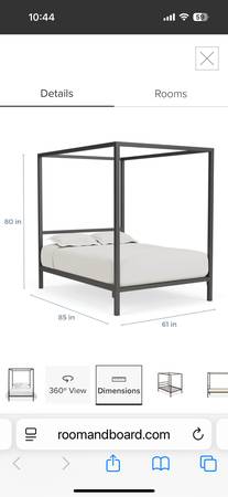 Modern hand welded steel queen size bed frame from Room&Board. Excellent condition. Sturdy, elegant and ready for a new owner! Current price at Room & Board $1799.00.... what a great bargain! Made in the USA! See pictures for additional details. PICK UP ONLY- no delivery. Price negotiable