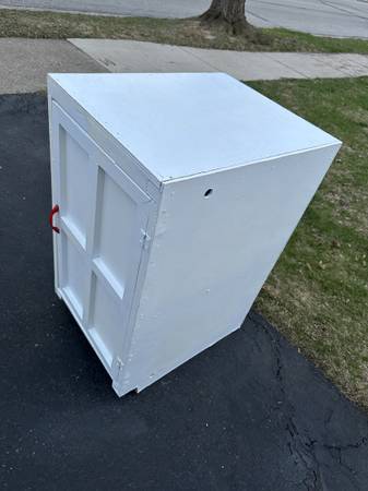 Kitchen Garage Storage Wood Cabinet With Shelf White Measures 20" W x 25" D x 36" H We used in our kitchen for larger countertop appliances