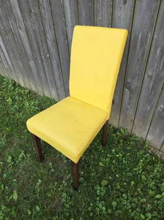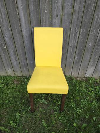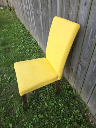 Modern Yellow Leather Chair with Brown Wood Legs $30 cash. CL chat or email. U can inspect / pickup @ my house, address will b provided. If it's listed, it's available. B sure 2 checkout my other...