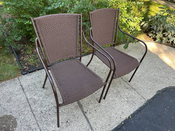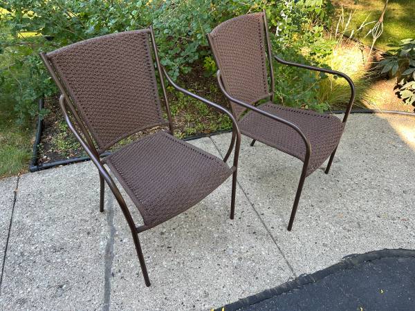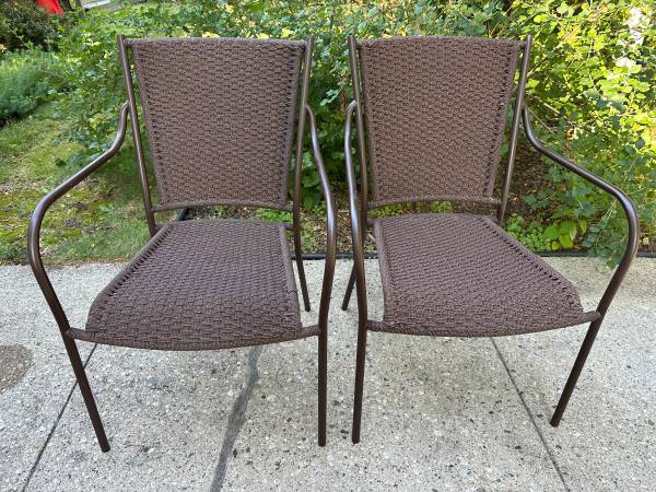 Pair New Heavy Duty Stackable Wicker Armchairs Chairs Seat H 17", seat W 17", back H 33"