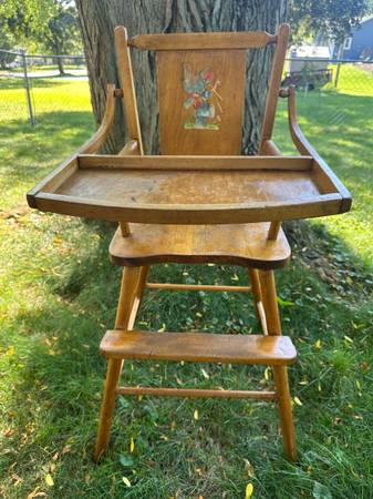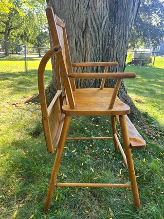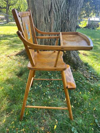 Vintage Maple Bunny Baby High Chair With Flip Back Tray Seat H 22", tray H 29", back H 37"