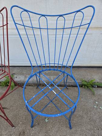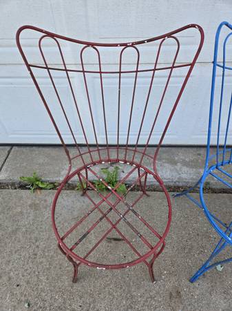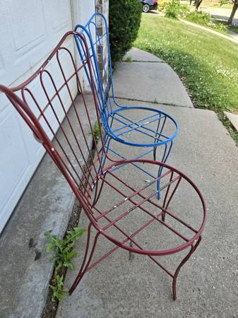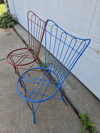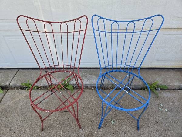 Vintage Pair of Painted Metal Steel Deck Patio Furniture Chairs