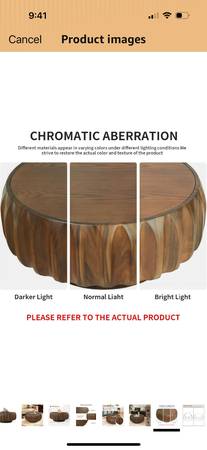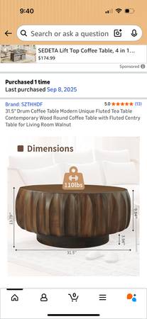 My loss is your gain. BRAND NEW, in the box drum coffee table. This table is so pretty, just smaller than I wanted for the space. The return policy stinks, so trying to sell it instead of returning it (it is very sturdy and weighs 68 lbs). All measurements and details are in the pictures! West Bend pickup, or possible delivery