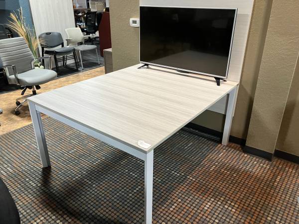 Conference Table with Display Wall in Noce Grigio Laminate (50.5"w x 60"l)