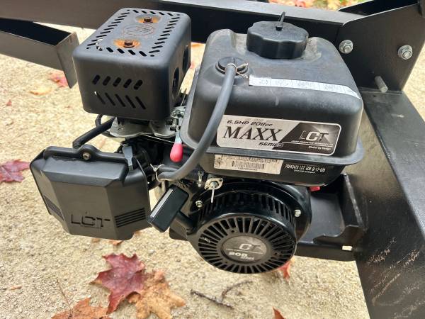 Like new 22 ton Lumber Jack log splitter. Starts right up and works perfectly. This is a tiltable model which allows you to split both vertically and horizontally. It has one brand new hydraulic hose, fresh hydraulic oil, fresh engine oil and a carburetor rebuild. The original owners manual is also included. It has a 2” ball and it is towable with a vehicle. The price is firm and cash only at $1100.