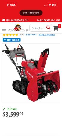 A LIKE NEW SNOWBLOWER, ORGINALLY $3500. JUST SERVICED AT A HONDA APPROVED DEALER(NEU'S) RUNS PERFECT