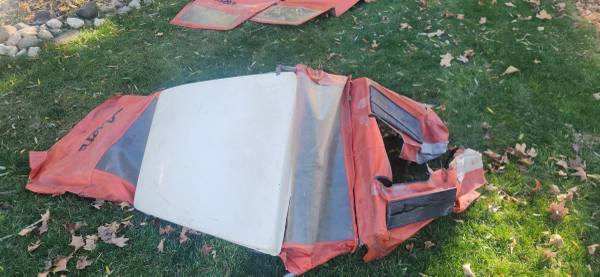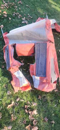 Soft cab for Simplicity/Ariens/Allis. Complete with fibergalss roof. Some of the clear plastic cracked and some of clear plastic out of stitching. Fabric's in good condition. Hard to find. Complete...