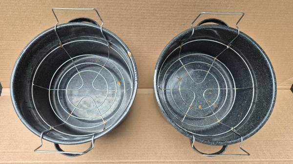 - $10 for both. - Used pots. - Pint jar size. - 11" Diameter. - 8" Tall. - No lids. CALL Tony ANYtime. 4 one 4 - six 88 - 888three No TEXTS. No EMAILS. (Craigslist will not allow me to delete email...