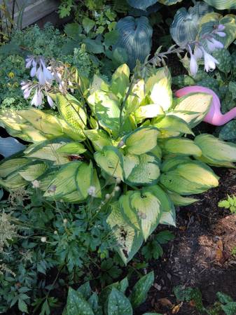 I know of some of the names of the hostas but not all of them. The ones I have are Krossa regal, Patriot, Lemon lime, Lanceifolia, Chiquita, golden tiara, and a bunch of blue unknown hostas and different sizes.
