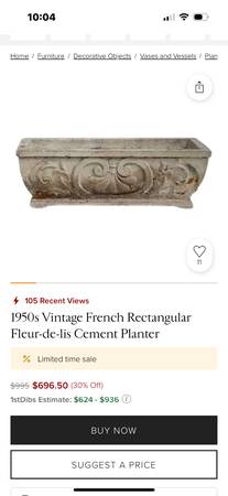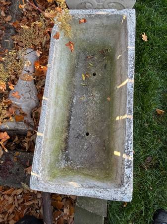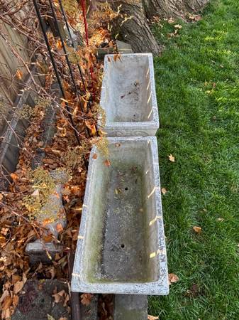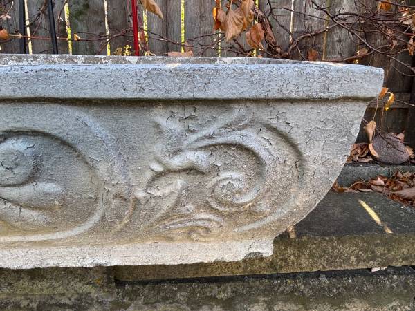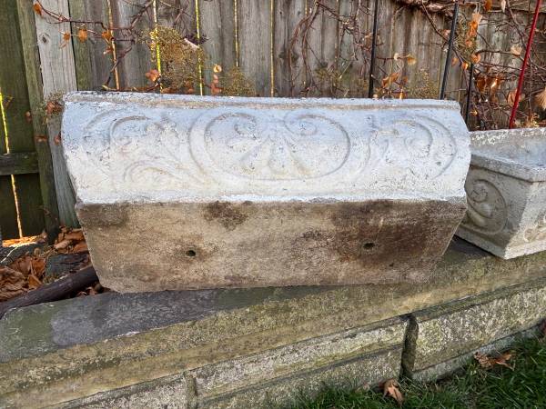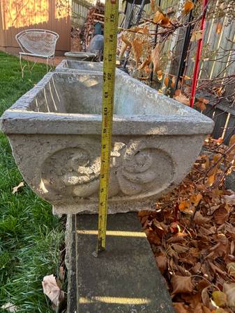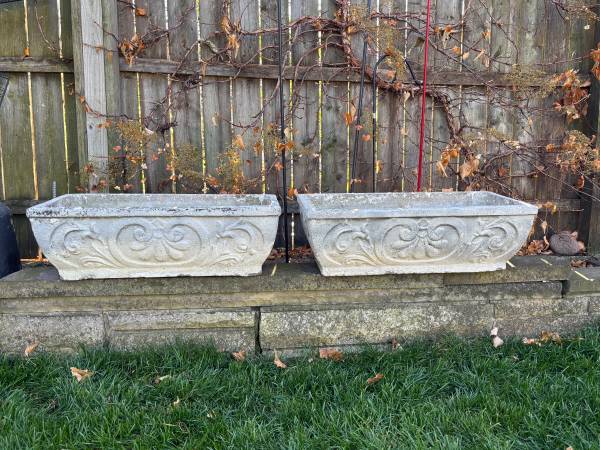 The Vintage French Fleur De Lis Rectangular Cement Outdoor Garden Planters are a beautiful and elegant addition to any outdoor space. These planters are made of durable cement material and feature a classic white color with intricate Fleur De Lis detailing. Perfect for indoor or outdoor use, these rectangular planters can be placed on a porch, balcony, or lawn, adding a touch of charm and sophistication to your home or garden. Easy to care for, these planters are a timeless and versatile decor piece that will add a touch of vintage flair to your outdoor space. These planters are in overall good vintage condition with one spot missing a small piece of concrete, easy to repair and repaint if you choose to do so. I have always left it as is.  Please view all photos to base your own opinion on condition and to see correct measurements. Also included several comps. Priced significantly higher than these. Local pick up only. Located within 1 mile of Milwaukee County zoo if you would like to stop by to take a look prior to purchasing