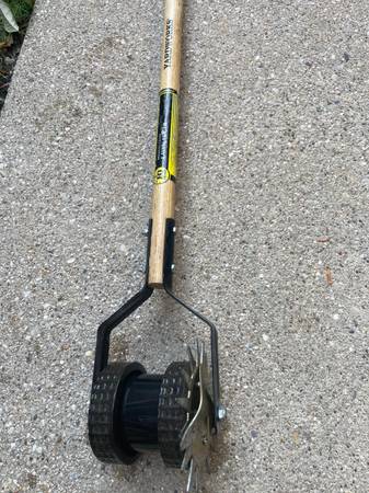 Wheel lawn / garden / sidewalk rotary edger, wood handle. Habla Espanol Landscaping