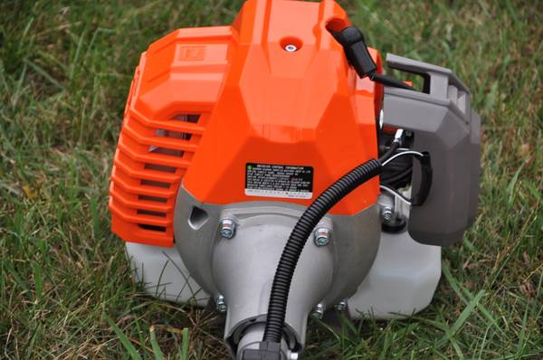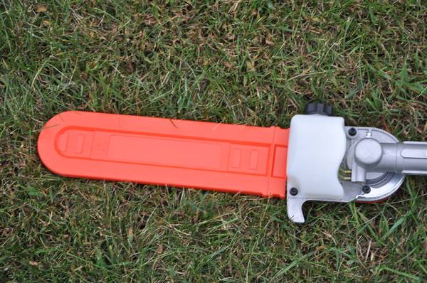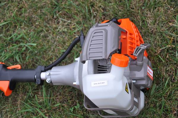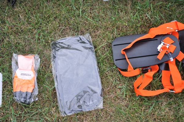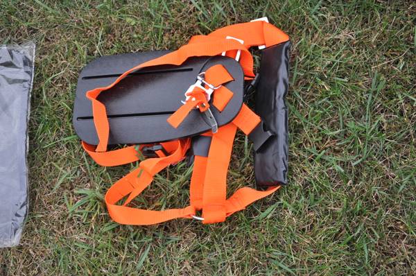 New and unused dry. No gas or oil was ever in it. I needed a longer saw and this won't work for me. Includes harness, oil mixing bottle, extensions, ear protectors, gloves, face shield, everything!
