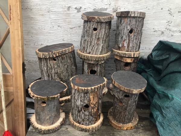 I have a few different birdhouses all made from hollowed out logs in different sizes