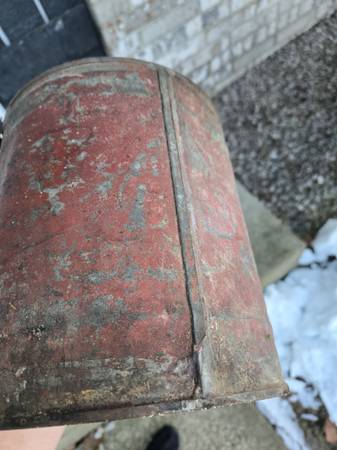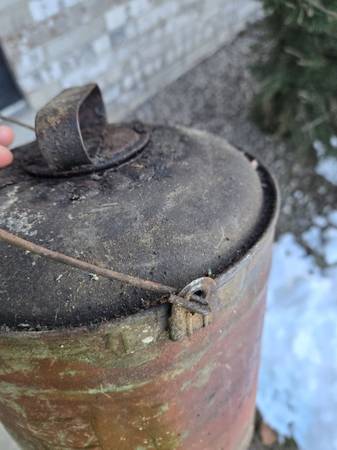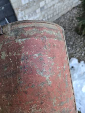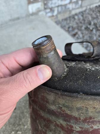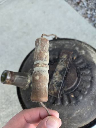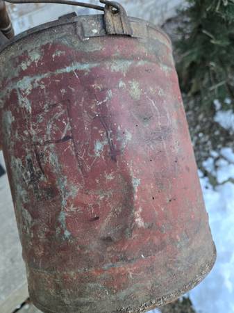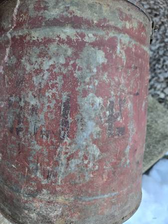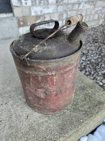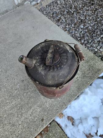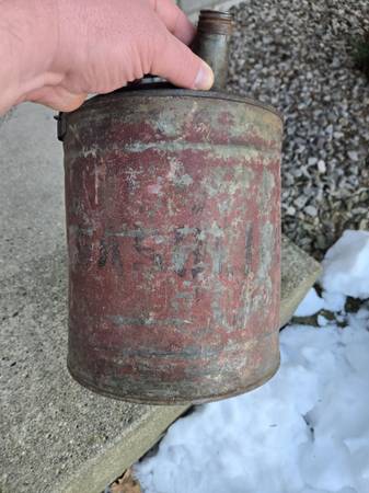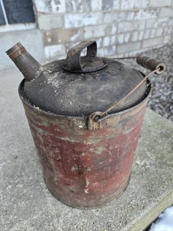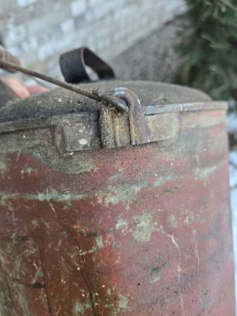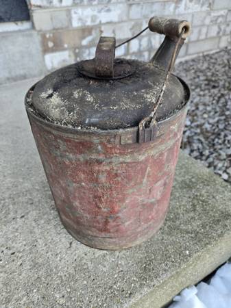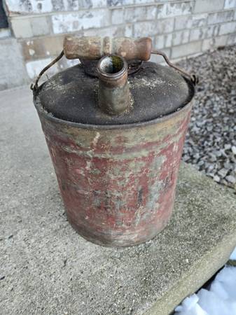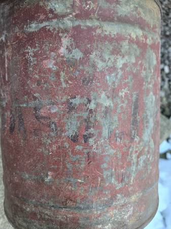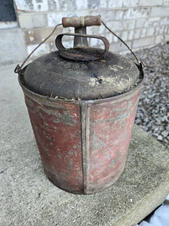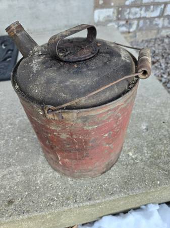 Vintage Small Galvanized Gasoline / Gas Can with Wood Handle
