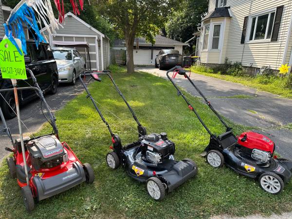 SNAPPER OR TROY BILT, LAWNMOWERS SELF PROPELLED / START FIRST PULL. READY TO GO. CASH & CARRY ONLY $259 ASIS WORKING AS THEY SHOULD. SOME ATTACHMENTS AVAILABLE FOR SOME AT ADDITIONAL FEE. TEXT or CALL show contact info