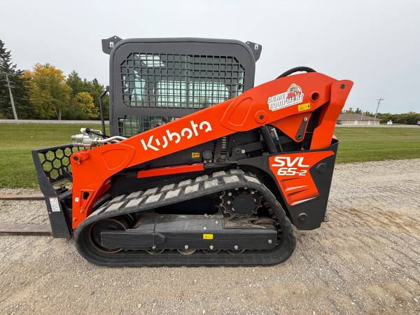 Excellent low hour Kubota Loader for sale. This has just 340 hours. All maintenance & service done religiously at our dealership. Specs and options below. This package comes with forks, extensions, land leveler, bucket, & snow pusher. A $80,000 package for thousands less. This is the 68HP Diesel. If you have questions on specs just ask.