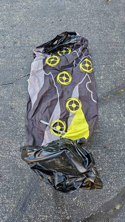 This is an inflatable kickboxing trainer. You can fill the base with water and then kick and punch the top part. It also has some sort of sensors when you hit the targets, but I haven't tried getting that working. I was just cleaning out my garage and I noticed I haven't used this in a while.