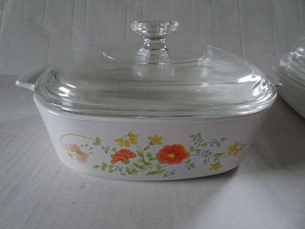 CORNING WARE CASSEROLE DISH WITH LID WILDFLOWER DESIGN Corning Ware Wildflower Casserole Dish with Clear Pyrex Lid Casserole Dish - 2 Quart A-2-B Clear Pyrex Lid A-9-C Range – Oven - Microwave