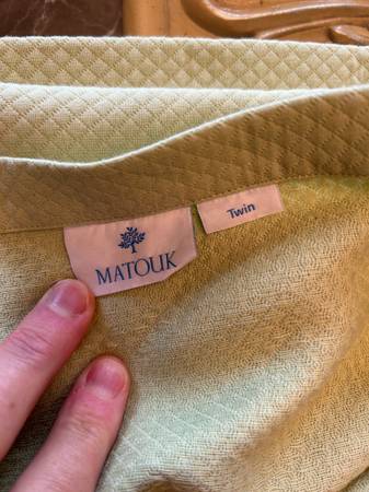 Beautiful Matouk Diamond Pique coverlet twin bed covers. Set of 2. Light green with white trim. $185 each new. Perfect condition.