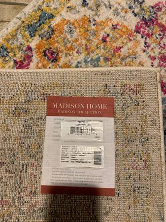 6.7x9.2 ft large area multi colored rug by Madison Home. 6ft runner available as well. No stains, really never used, perfect condition. $45 large rug, $20 for 6ft runner. Take both for $60