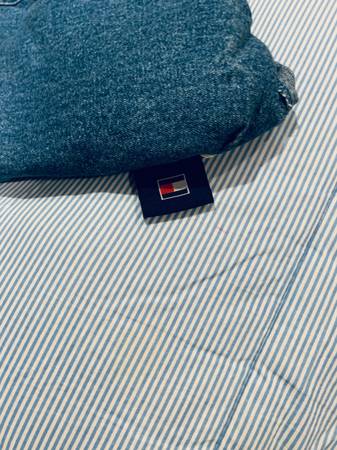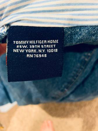 Denim twin comforter by Tommy Hilfigier, non smoking home, no stains tears, rips, great condition. Cotton bottom fabric.