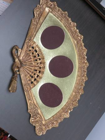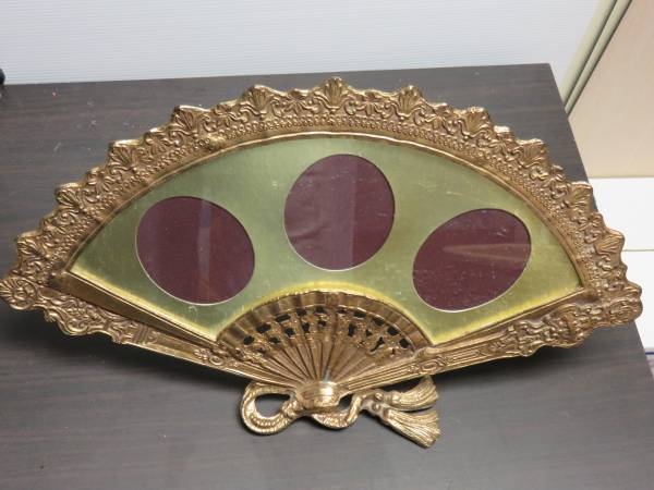 Gold Plated Fan Easel Picture Frame Mom used this for pictures of her, Dad and I as our family picture (each opening is 3" x 3-1/4" so you can use a good size picture) Measures 17" from end to end...