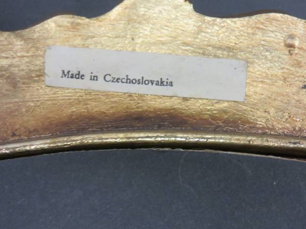 Vintage Czechoslovakia Gold Metal Ornate Fan Shaped Easel Picture...