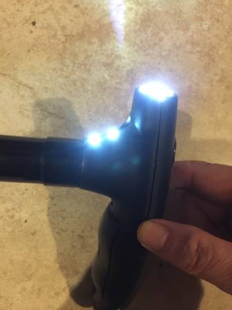 A almost new folding cane with lights. used once only. unfortunately the battery is dead. so can not show the lights. but lights works.