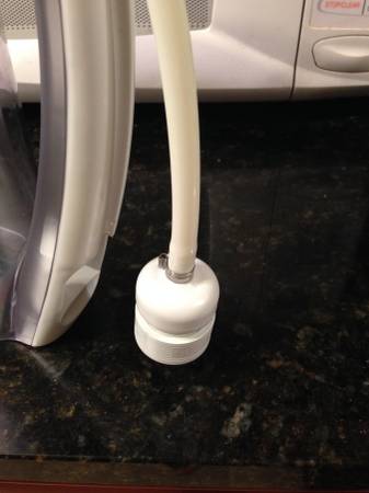 1) The blue tint color water filter with pitcher and connector to faucet with almost new filter inside. Has instruction booklet, but no original packing box. price is $10