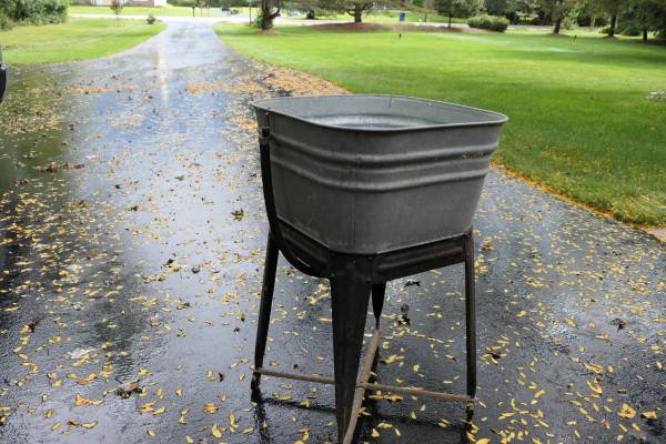 Vintage laundry tub on stand. Great condition. 20x20x11 & 34 ht.