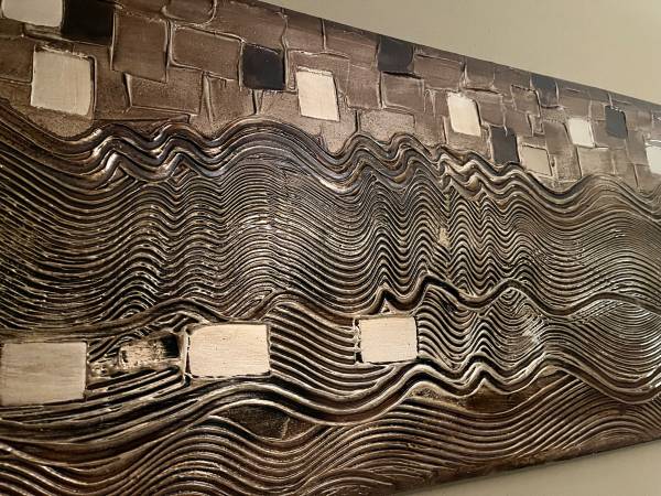 Large canvas picture. Metallic paint. Colors are browns/gold. Measures 70” wide by 20” high. Like new condition. Smoke and pet free home.