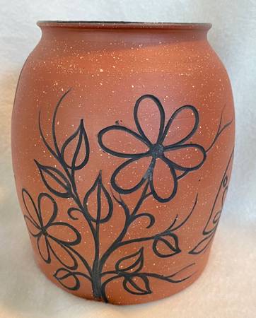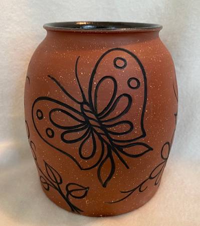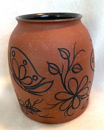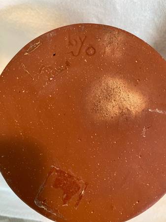 Measures approximately 6 1/2" x 5 1/2" and it is heavy. Glazed interior. It is a beautiful piece and unfortunately I do not know the significance of the etched signature on the bottom. It is the...