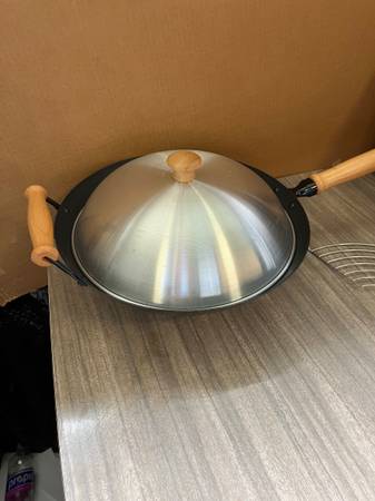 14 "Diameter Wok- Steel With 2 wood handles 2 wire racks , Top $ pieces Sept 2025