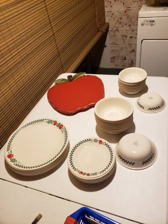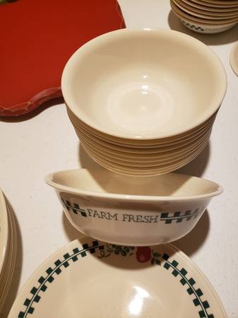12 piece set. Dinner Plate 10 inch Side Plates 6.5 inch Large Bowls 6 inch Small Bowls 5.5 inch Lazy Susan