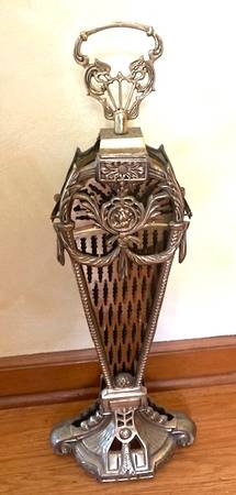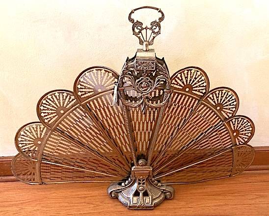 This vintage brass peacock screen exudes a neoclassical design, adding a touch of elegance to any fireplace. This original piece from the 1960s is in like new condition, having never been used except for decoration, and measures 36” across when opened and 27.5” high. This screen, however, is both functional and stylish and can be collapsed for storage.