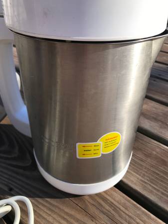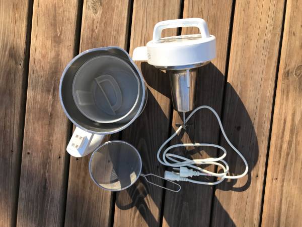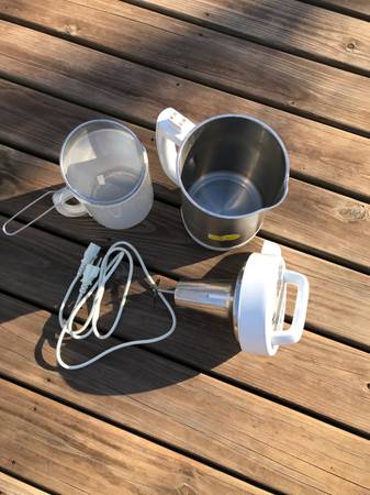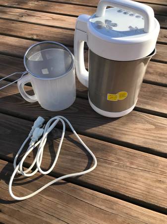 Makes cold, raw or heated soups, beans, grains and nut milks. Includes blender container, top with controls and blender, removable electric cord, strainer, plastic pitcher. Handle on pitcher comes...
