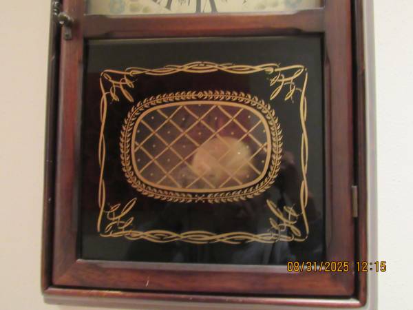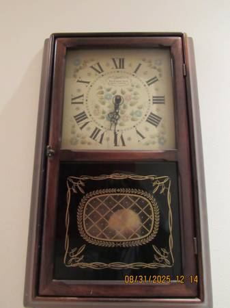 New England Clock Company Spring Wound Pendulum Wall Clock 14.5" width 23" height 4.5" depth As Pictured