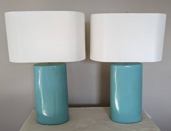 2 QUALITY 27” Blue Ceramic Modern Table Lamps - household items - by...