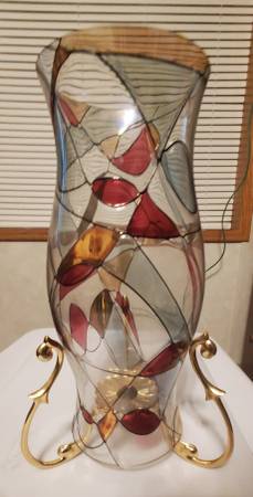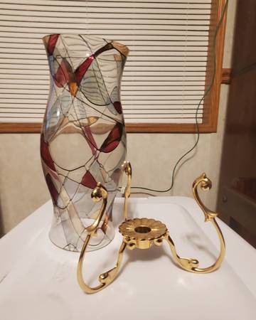 Vintage Partylite Mosaic Calypso Stained Glass Hurricane Shade with Versailles Stand