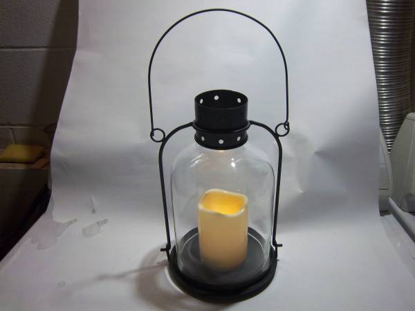 Shelf or hanging Lantern, has battery operated Candle.