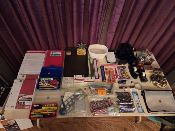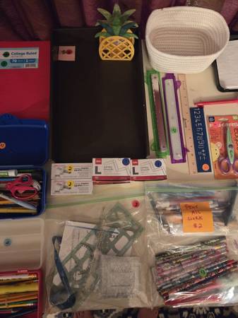 PICS CURRENT!! Office & School Supplies Arts & Crafts & Household & Framed Wall Pictures & Tools & Pool Dive Toys & Fish Food & Decorative Knick Knacks & Games & More (see photos) ~ Save 75%-85% off stores ~ Cheap!! Most Brand New!! See Pictures for prices. 50 cents and up. Everything set-up in Dining Room for easy viewing!! Thanks!!