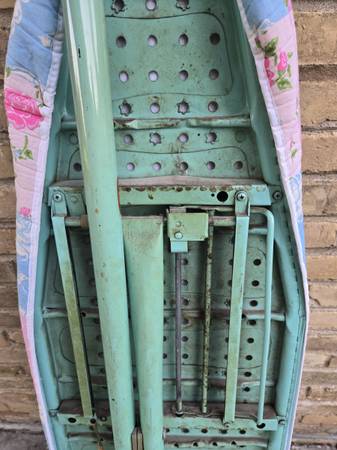 Vintage 1950's Mid Century Modern (MCM) Aqua Marine Blue, Turquoise Steel Metal Ironing Board
