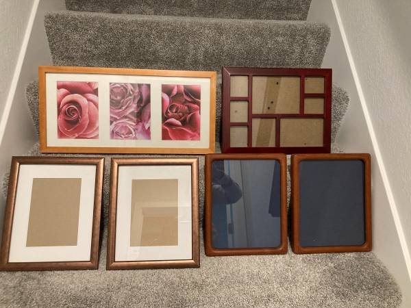 (3) wood frames 4x6 inch $3 Used Frames: 8x10 (2) and 5x7 (2) Wooden Frames. $3 each