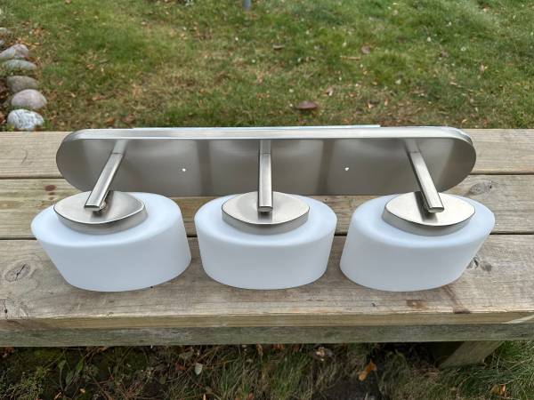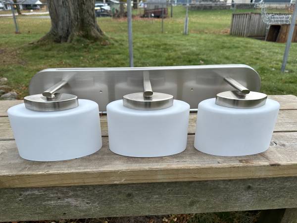 Kichler 37380 3 Light Etched Glass 24" Wide Bathroom Vanity Light With wall mount plate and bulbs as shown Paid $250