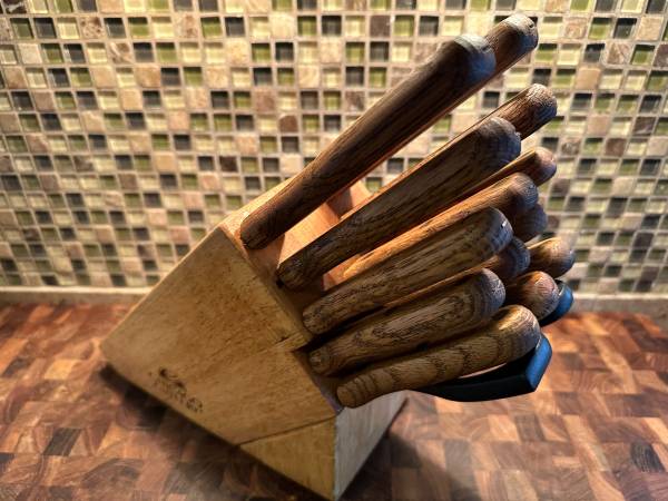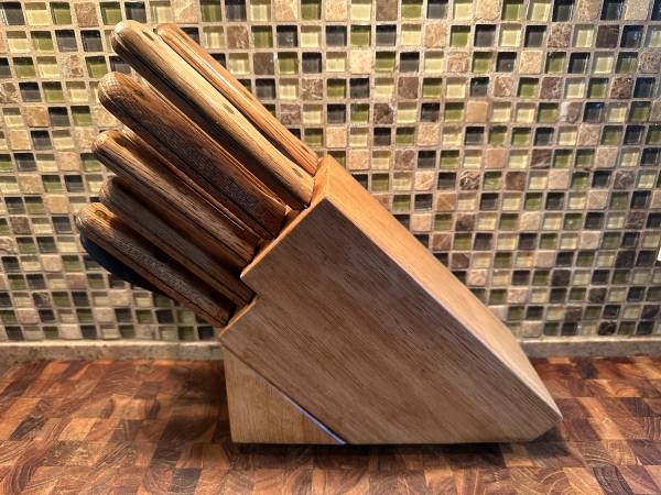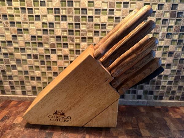 Knife Set Knives Chicago Cutlery With Brass Rivets Same as new perfect clean condition Solid maple knife block
