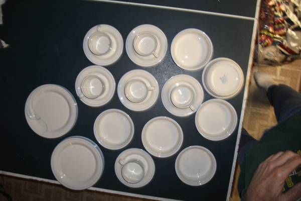 I have 6 cups 6 saucers 8 plates & 6 Bowls. The plates have 2 different patterns 4ea. $60.00 for all of them. do not text i can not get it thus i can not respond. email & phone calls only. if i miss your call leave a name & number i'll call back asap. if you do email it may take time to respond, calling is best.