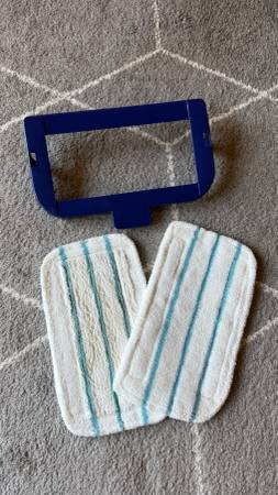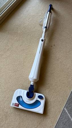 Steam mop barely used. Uses tap water or you can use a cleaning solution. Comes with two washable mop pads, and blue adapter to glide on carpet. CASH ONLY. MEETUP ONLY.