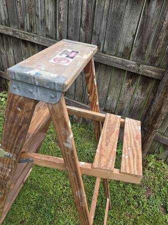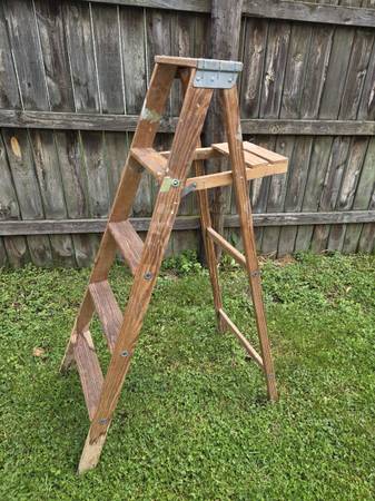 Vintage Wood 5 Foot Step Ladder Tested, Works Great! $15 cash. Email or phone me @ home. U can inspect / pickup @ my house, address will b provided. If it's listed, it's available. B sure 2 checkout...