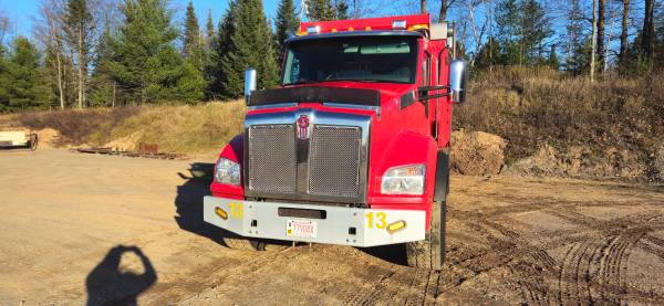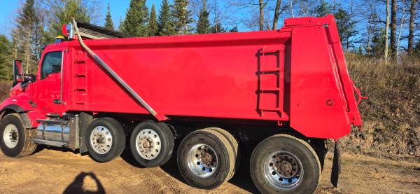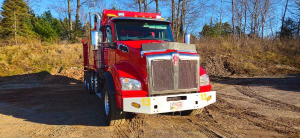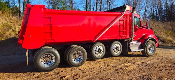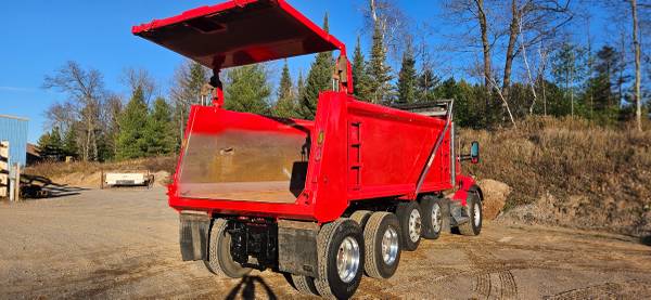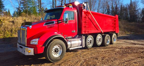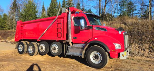 Kenworth T880 quad axle dump. 272,500 miles, 10,781 truck hours. Paccar MX-13 455hp NEW UPDATED SHORT BLOCK with warranty just 20,000 miles ago installed by Kenworth. Eaton UltraShift 10 speed (automated) w/new clutch. 20k front, 46k rears, full lockers, air ride, disc brakes, steerable pushers. Complete pintle/trailer set-up. 18'6" Brandon heavy duty (1/4" floor, 3/16" sides) heated box with high-lift gate and asphalt tapered rear. Box and rear frame were just blasted and painted. Vibrator, tarp and excellent box weigh scale with display in cab! Interior is pretty loaded with options as well including power, full gauges, CB and back-up camera. Tires are excellent, 360' strobe lighting. This truck has been meticulously maintained by Kenworth and our own fleet management.....many new parts: Complete motor, heads, engine wire harness, many sensors (nox, particulate, oil, coolant, etc.), clutch, radiator, coolant tubes, hood struts, washer pump & bottle, torque rods, leveling valve, brake valves, and many more items. Truck is in very good condition and will come with a full tank of fuel. Just continually updating our fleet. $178,000. Email, call or text; 7 one 5, 8 nine 1, zero 2 4 zero.