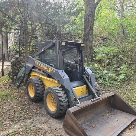 NEW PRICE $17500 2000 NEW HOLLAND LS170 SKID LOADER 3110 HOURS, VERY RECENT OIL & FILTER, FUEL FILTERS, AIR FILTERS, HYDRAULIC OIL & FILTER, CHAIN CASE OIL. HAS ENCLOSED CAB WITH HEAT. AUXILLARY HYDRAULICS. RECENT WATER PUMP, THERMOSTAT AND STARTER. 2 YEAR OLD BATTERY. NEEDS A SEAT. THIS UNIT IS MECHANIC OWNED FOR 23 YEARS. ALWAYS STARTS, RUNS, DRIVES AND WORKS LIKE IT SHOULD. ATTACHED BUCKET, SET OF FORKS, TRAILER HITCH ATTACHMENT AND ROCK BUCKET ARE INCLUDED.